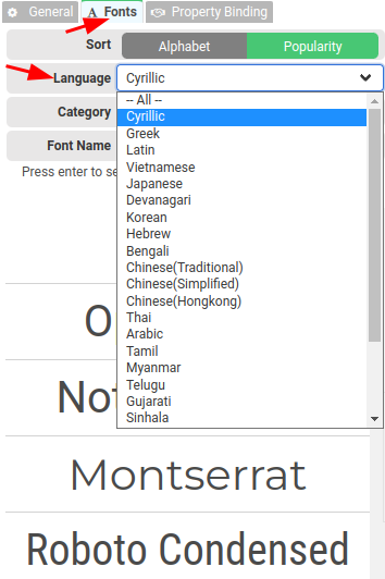 - Font: Font family the Label element, use “Select Font” to select a font.