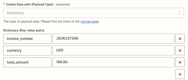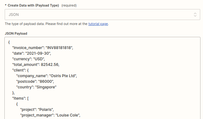 iii. JSON data: This payload type is suitable for complex hierarchical data represented in JSON format. JSON data can include strings, numbers, objects, arrays, booleans, or even null values.